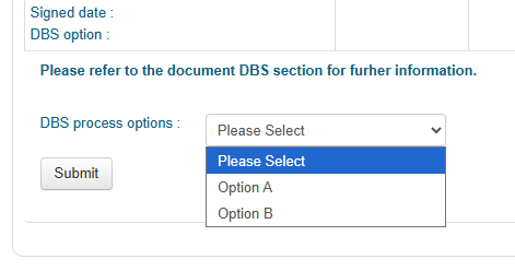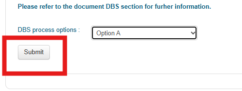 Once you have chosen your preferred DBS process option, click Submit to finalise and sign the MOA.