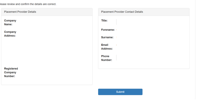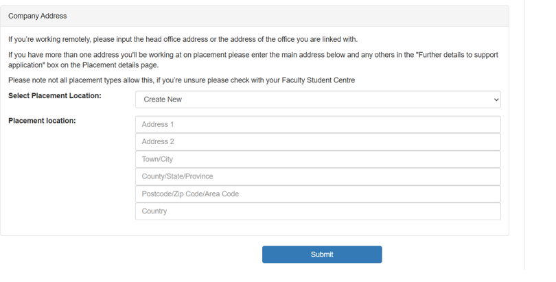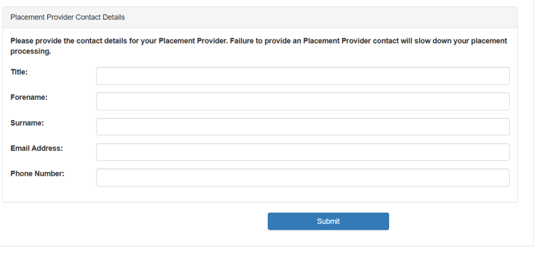 Next, you need to enter the contact details at the placement. Enter all the required details and click Submit.