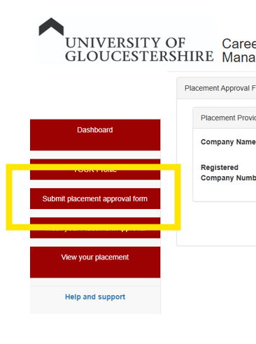 To complete your placement aproval form, first click on the menu link “Submit placement approval form”