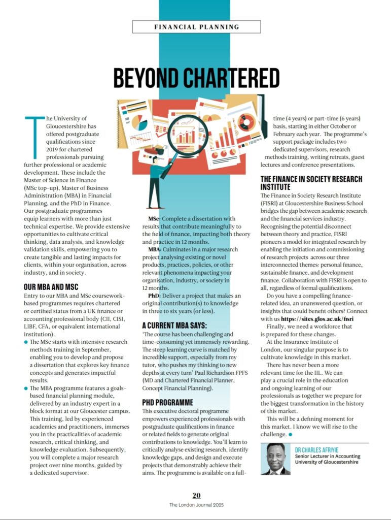 In his article, Dr. Afriyie outlines what it truly means to “go Beyond Chartered.” He is a key member of the team of academics and practitioners who deliver the University of Gloucestershire‘s postgraduate programmes for professionals who are chartered or fellows.