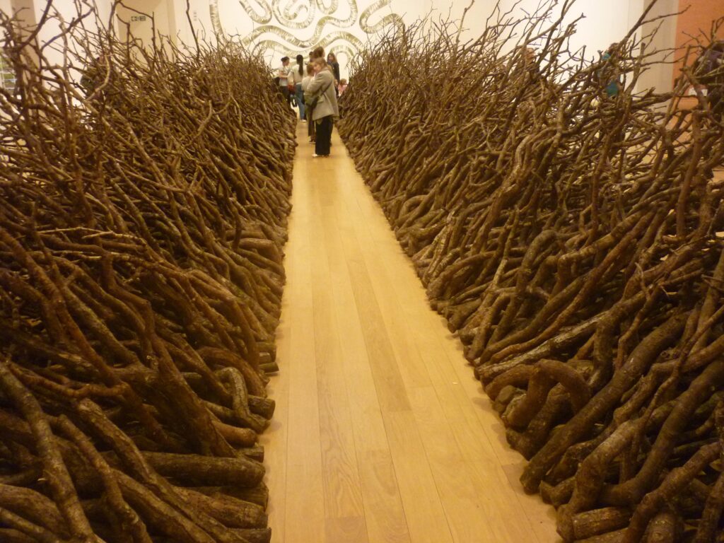 I’ve never seen his work at first hand but what I gained from visiting this exhibition is his creative interaction with nature, often playful, but underlain with the spiritual significance of the visible decay of materials. His preoccupation is with temporality. One video I watched showed the creation of ripples in a pond, forever changing but remaining concentric in form. Another video had me mesmorised for half an hour until eventually Andy emerged from under the swaying seaweed as the tide inexorably came in. Interpretation? Possibly a mischievous tease or maybe referencing the dominance and acceptance of nature’s rhythms.