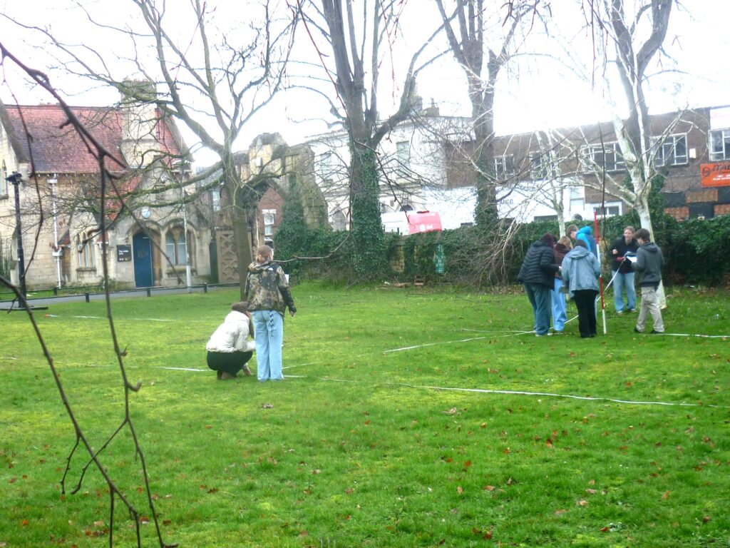 While the science of surveying is much more technological and automated now, the art of survey still has a part to play, certainly in landscape architecture site survey. The physical human presence on site enables a visceral more subjective appraisal of the context and conditions obtaining there, confirming the validity of the old adage that you learn more through the soles of your feet (than say looking at a screen plan or photo). Even using traditional equipment such as tapes and levels has a part to play as it trains the student in consistently precise measurement and the appreciation of scale. So it was that last Tuesday year one landscape architecture students on the Cheltenham course undertook a line-and-level survey of the campus front lawn and learned how to estimate tree heights using an Abney level and basic trigonometry.